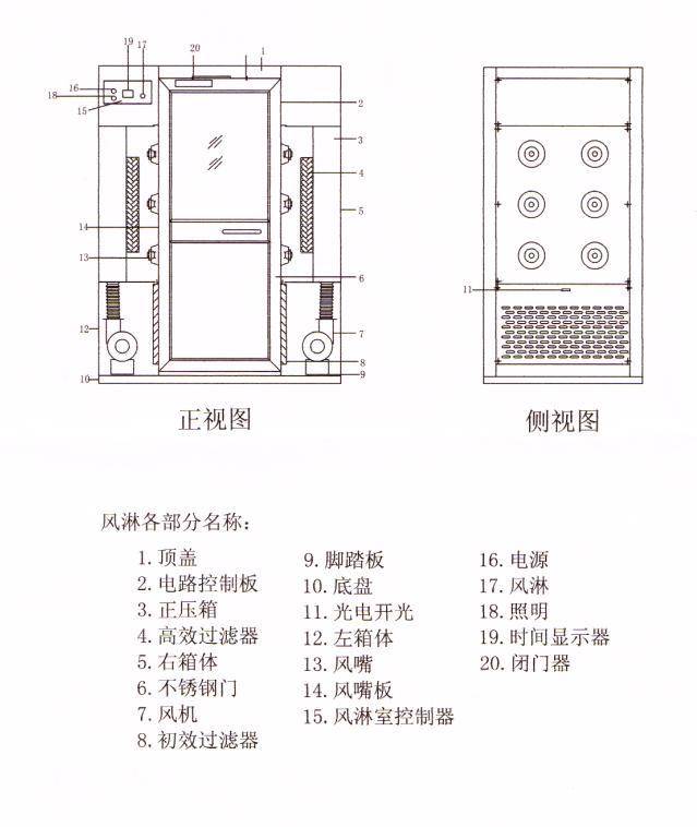 4、 風/貨淋室由專人進行操作,吹淋噴嘴經定位后,非操作人員勿輕易移位。