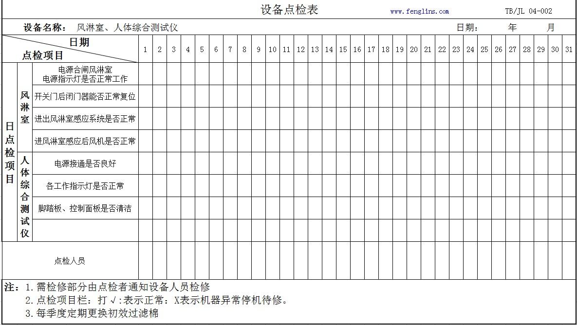 2.點檢項目欄:打√:表示正常:X表示機器異常停機待修。